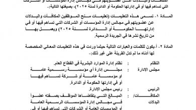 صدور تعليمات منح الموظفين المكآفات والبدلات عن عضويتهم بمجالس الإدارة