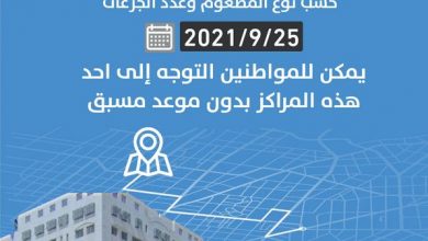 حرير _ أعلنت وزارة الصحة، أسماء مراكز التطعيم التي تتوافر فيها اللقاحات المضادة لفيروس كورونا، حسب نوع المطعوم وعدد الجرعات…