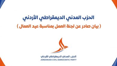 حرير – في عيد العمال، يحيّي الحزب المدني الديمقراطي، العاملات والعاملين في الأردن والعالم، الذين شكّلوا بجهودهم وعرقهم عماد الإنتاج،…