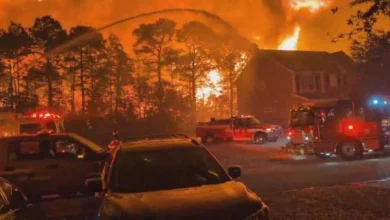 حرائق ضخمة تجتاح كارولينا الشمالية والجنوبية في أمريكا وأوامر بإجلاء السكان