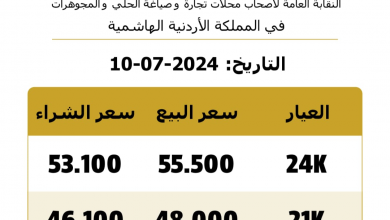 هكذا بلغ سعر غرام الذهب في الاردن اليوم