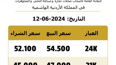 حرير- يواصل سعر غرام الذهب اليوم الثلاثاء استقراره لليوم الثالث في الأردن، وفق نقابة اصحاب محلات الحلي والمجوهرات. وبلغ سعر…