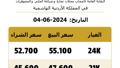 حرير- استقر سعر غرام الذهب اليوم الثلاثاء في الأردن، وفق نقابة اصحاب محلات الحلي والمجوهرات. وبلغ سعر غرام الذهب عيار…
