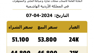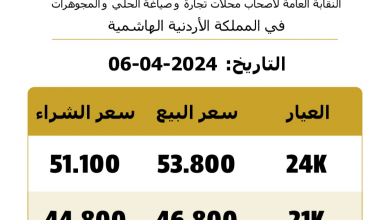 حرير- ارتفعت أسعار الذهب في الاردن اليوم الاثنين 20 قرشاً . ووصل سعر غرام الذهب من عيار 21 الى 47…