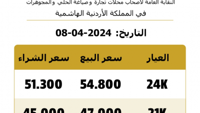 حرير- ارتفعت أسعار الذهب في الأردن 80 قرشا اليوم السبت ، ووصل سعر غرام الذهب من عيار 21 الى 45.8…