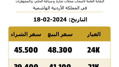 حرير- استقرت أسعار بيع وشراء الذهب بالأردن لليوم الثالث على التوالي. ووفقا للتسعيرة اليومية الصادرة عن نقابة أصحاب محلات تجارة…