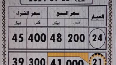 حرير- انخفضت اسعار الذهب بالأردن اليوم 40 قرشاً للغرام ، حيث وصل سعر غرام الذهب من عيار 21 الأكثر طلباً…