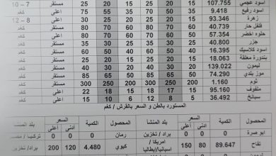 حرير- بلغت كميات الخضار والفواكه والورقيات الواردة إلى سوق الجملة المركزي التابع لأمانة عمان الكبرى ، الخميس 3119 طنا، منها…
