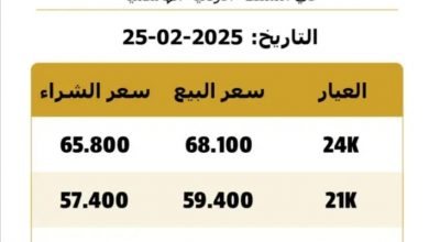 حرير- استقرت أسعار الذهب في السوق المحلية، اليوم الثلاثاء، وفق النقابة العامة لأصحاب محال تجارة الحلي والمجوهرات. وبلغ سعر غرام…