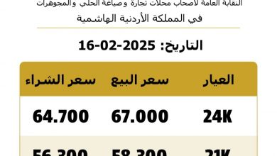 حرير- انخفضت اسعار الذهب في الاردن 60 قرشا للغرام اليوم السبت بعد ما سجلت أعلى سعر لها تاريخيا . ووصل…