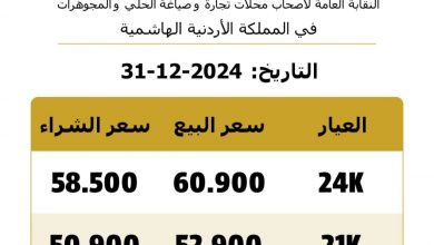 انخفاض غرام الذهب في الأردن 30 قرشاً.. كم بلغ سعر غرام 21؟