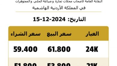 كم بلغ سعر غرام الذهب 21 في الأردن؟