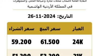 حرير- استقرت اسعار الذهب في الأردن اليوم الأحد بعد ان سجلت رقما تاريخياً يوم أمس . ووصل سعر غرام الذهب…