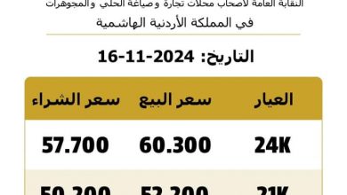 حرير- استقرت اسعار الذهب في الأردن اليوم الأحد بعد ان شهدت انخفاضات متتالية خلال الايام الماضية . ووصل سعر غرام…