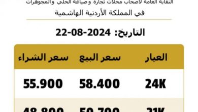 حرير- استقرت أسعار الذهب في الأسواق المحلية اليوم الاربعاء، وفق نقابة تجار الحلي والمجوهرات. وبلغ سعر غرام الذهب عيار 21…