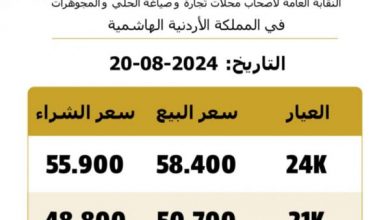 حرير- ارتفعت أسعار الذهب في السوق المحلي اليوم الثلاثاء، مسجلة 50.70 دينارا للغرام لعيار 21 وفق التسعيرة الصباحية، الصادرة عن…